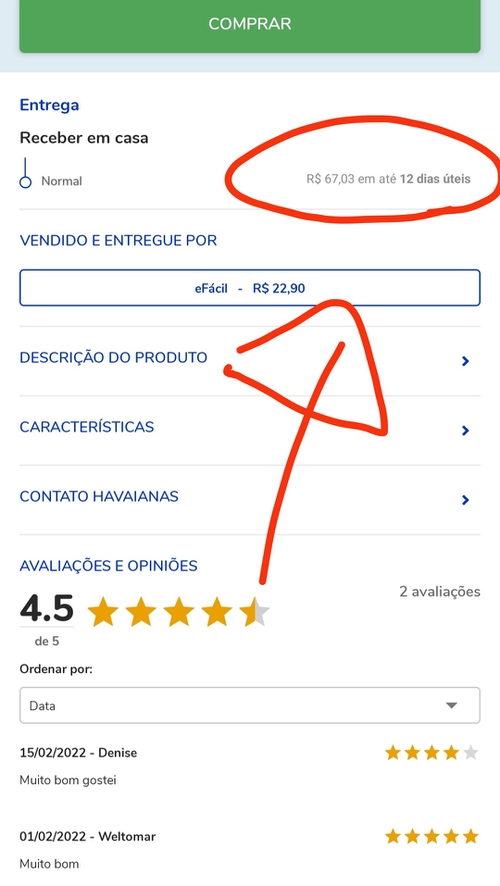Excelente promoção compre um par de chinelos e pague $67,03 de frete