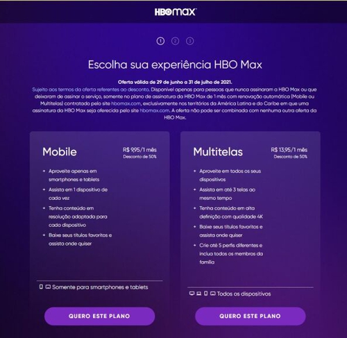 Sujeito aos termos da oferta referentes ...conto. Disponível apenas para pessoas que nunca assinaram a HBO Max ou que deixaram de assinar o serviço, somente no plano de assinatura da HBO Max de 1 mês com renovação automática (Mobile ou Multitelas) contratado pelo site hbomax.com, exclusivamente nos territórios da América Latina e do Caribe em que uma assinatura da HBO Max seja oferecida pelo site hbomax.com. A oferta não pode ser combinada com nenhuma outra oferta da HBO Max."