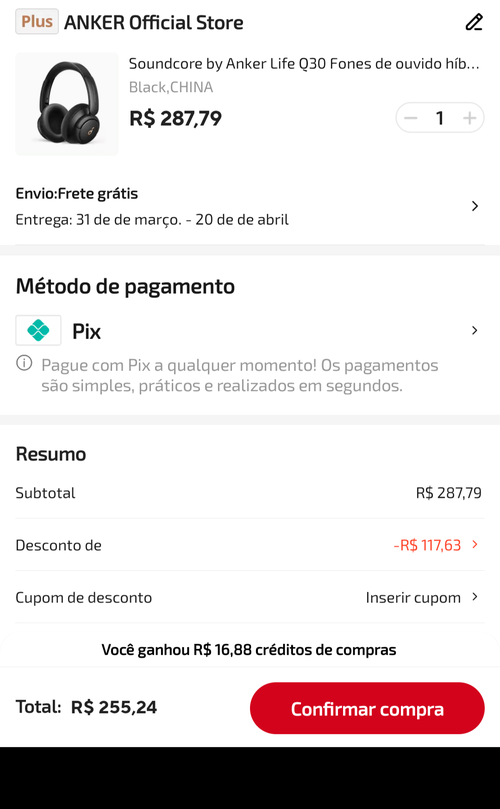 Bom preço. Consegui chegar a 247 no pix e 252 parcelado em 2x, sem precisar selecionar opção de remessa do Brasil.