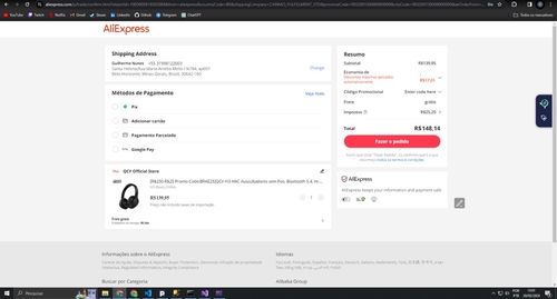 Chega no preço abaixo de R$148,14 utilizando moedas e o cupom disponibilizado (IMPOSTOS JA INCLUSO)