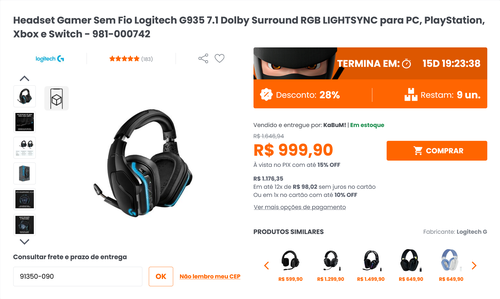 Paguei 750,00 no meu, realmente é muito bom, inclusive com Dolby, mas pra fazer funcionar é uma gambiarra pra usar com o Dolby Access do Win10. Então, esse Dolby na propaganda é fake, a Logitech abandonou o suporte e enfiou um DTS horrível.