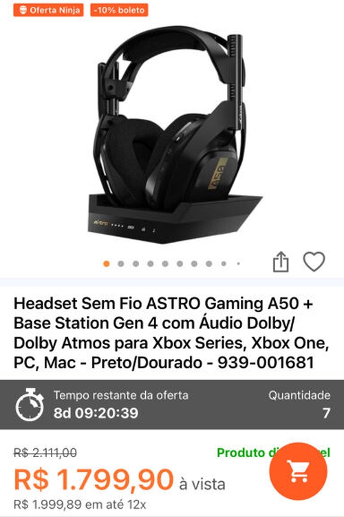 Preço muito bom para um headset wireless com qualidade ultra premium.