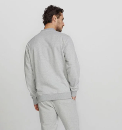 - O modelo conta com decote redondo, barra ajustada e punhos em ribana