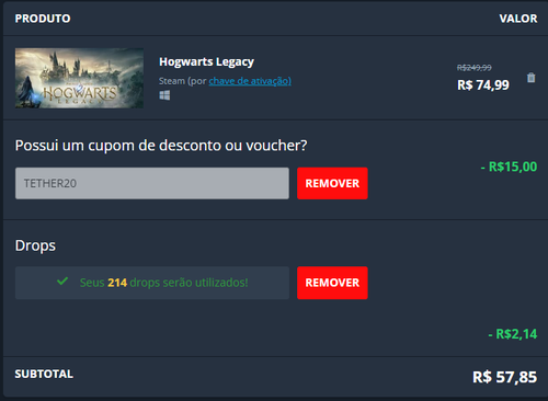 Peguei com o desconto do tether e da pra pagar no pix, saiu por 59