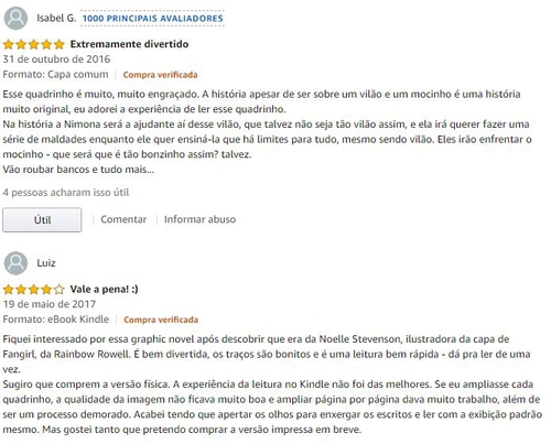Best-seller do New York Times, premiado com um Eisner Award e finalista do National Book Award,Nimona teve os direitos de adaptação cinematográfica adquiridos pela 20th Century Fox Animation. “Se decidir ler um quadrinho este ano, que seja este.” — Kirkus Reviews