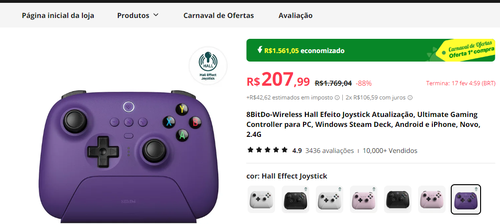 [Imposto Incluso] Controle Gamer 8BitDo - Ultimate Wireless (Hall Effect) c/ dock