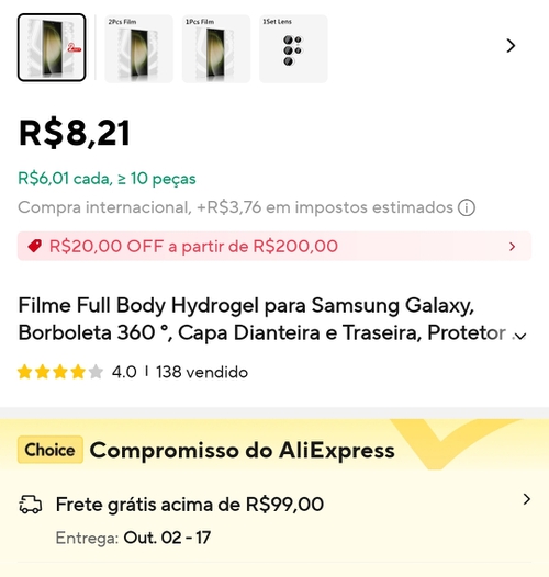 [Imposto Incluso] Filme Full Hydrogel para Samsung película S24, S23, S22