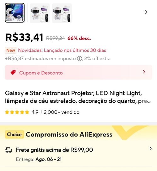Paguei R$ 19,33 pelo Aliexpress choice, e chegou tem uma semana. É muito massa, meu filho carrega ele pela casa toda e mostra pra todo mundo que vem na minha casa, valeu a pena demais. Olhei agora e está R$ 57, eu nem sabia que tinha pagado barato