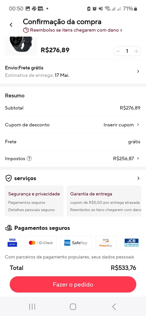 Pra mim está aparecendo 256 reais de imposto. No final tá dando 533. É isso mesmo ?