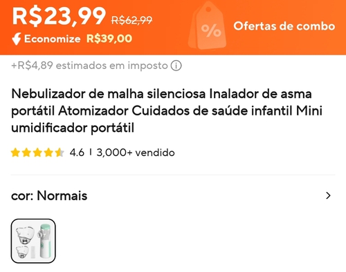 [Imposto Incluso] Nebulizador portátil Atomizador