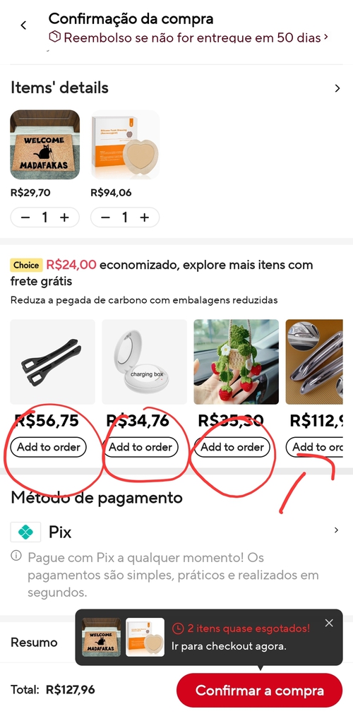 **Para zerar o valor do frete, na página de pagamento adicione um qualquer outro item para que a compra mínima seja de 99 reais.