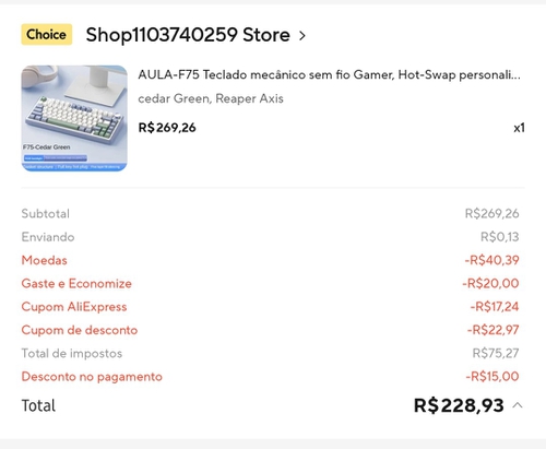 [Imposto Incluso][Moedas + Google Pay] Teclado Mecânico AULA F75