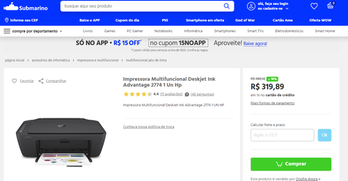 Impressora Multifuncional DeskJet Ink Advantage 2774 1 UN HP