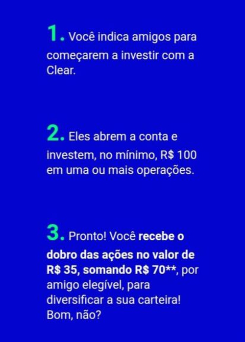INDIQUE AMIGOS PARA INVESTIREM COM A CLEAR E RECEBA R$70 EM AÇÕES