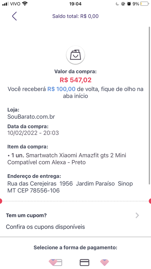 Aqui também tá dando 100 de volta, mesmo pelo app,