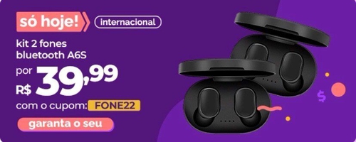 [Internacional] Kit de 2 Fones de Ouvido Sem Fio Bluetooth A6S | R$40
