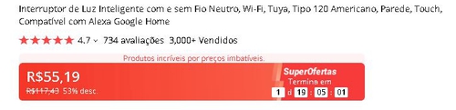 Interruptor de Luz Inteligente com e sem Fio Neutro, Wi Fi Tuya