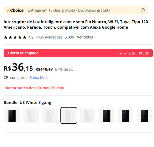 Interruptor de Luz Inteligente Wi Fi, Tuya - Compatível com Alexa e Google Home|
