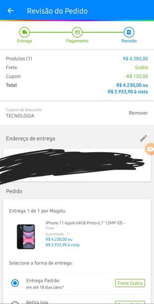 iPhone 11 Apple 64GB Preto 6,1” R$3905