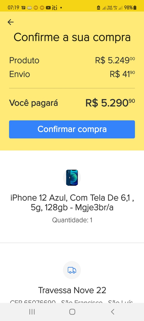 Tô tendo efetuarva compra,mas valor tá 5.240