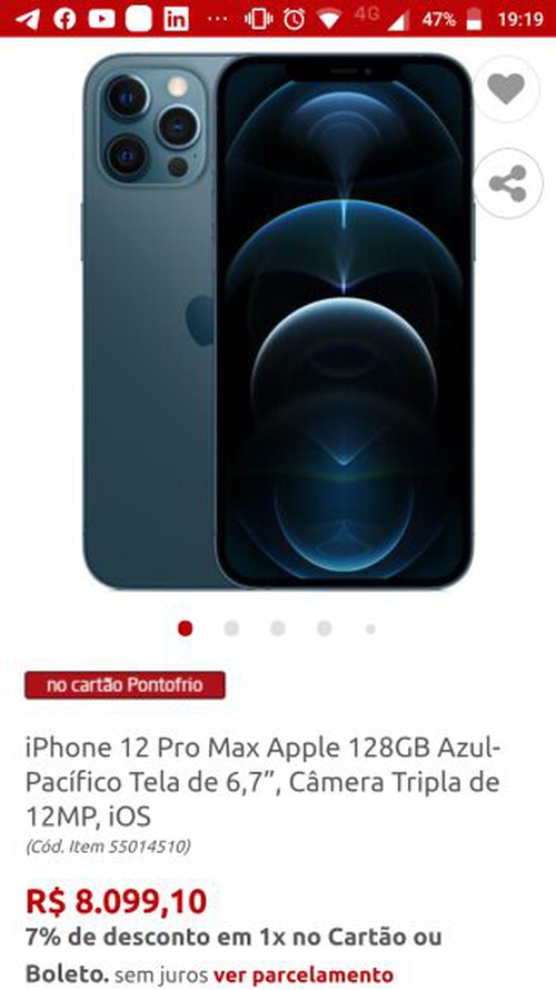 iPhones Pro Max despencando o preço, enquanto linha 12 normal e 12 Pro mantém os mesmos preços.
