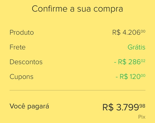 Comprando no PIX com 7% off + cupom ELETRO120 fica por R$3799,98