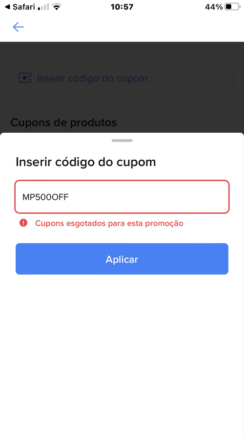 O cupom Ganhei300 se aplica. mas o MP500Off não consegui aplicar