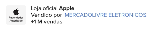 Aqui entrei e está aparecendo loja Oficial da Apple. Normal, confiável. Apenas a Apple que revende no ML.