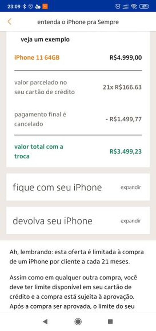 Mas tem um valor no final se vc quiser ficar com seu aparelho.