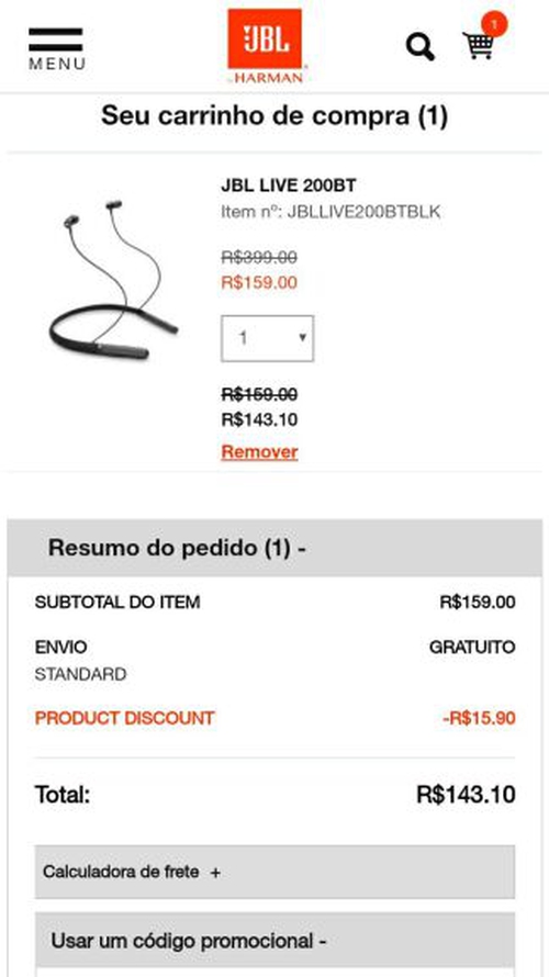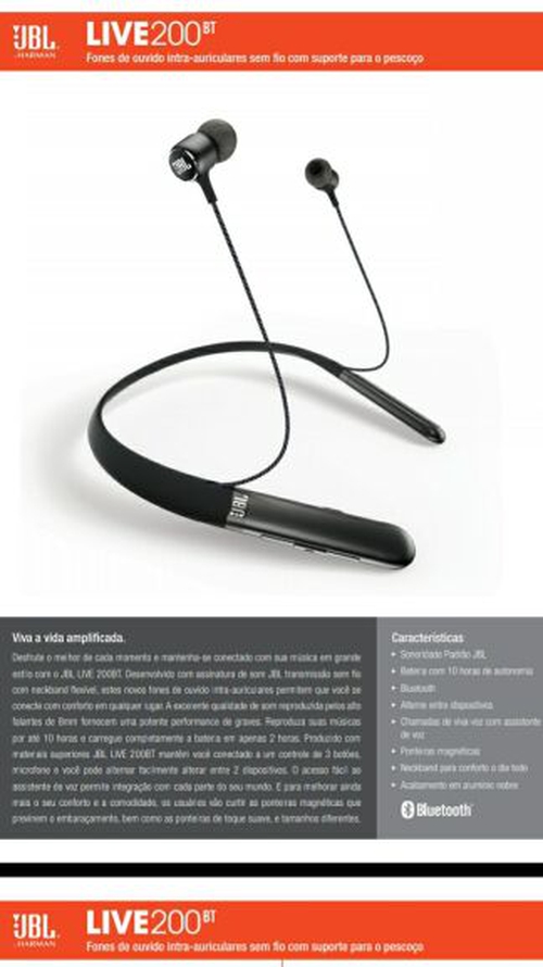 JBL LIVE 200BT Fones de ouvido intra-auriculares | R$143