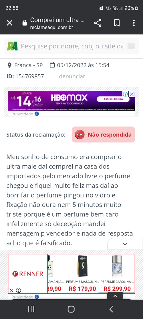 Postagem 5/12/22.Estou louco pra pegar um 212 Black mas sinceramente vou pegar na loja física (Renner, C&A, Riachuelo e etc.) e pagar o dobro. Não da pra confiar em ninguém ultimamente, até da Sephora tem reclamação de falsificação, e não é só uma reclamação, são várias...Muito doce mesmo ?