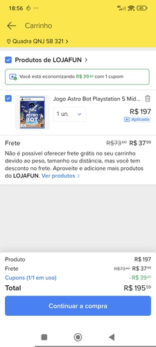 $37 conto de frete. Aí não rola