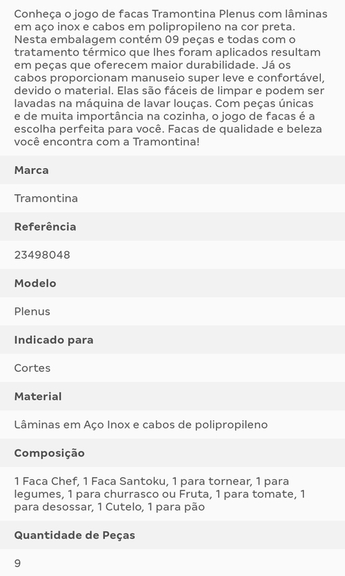 Comprei esse kit uns 2 anos atrás e em três semanas começaram os pontos de ferrugem. Todas as facas começaram a estragar rapidamente mesmo secando com cuidado. Uma tristeza que a Tramontina esteja desse nível atualmente.