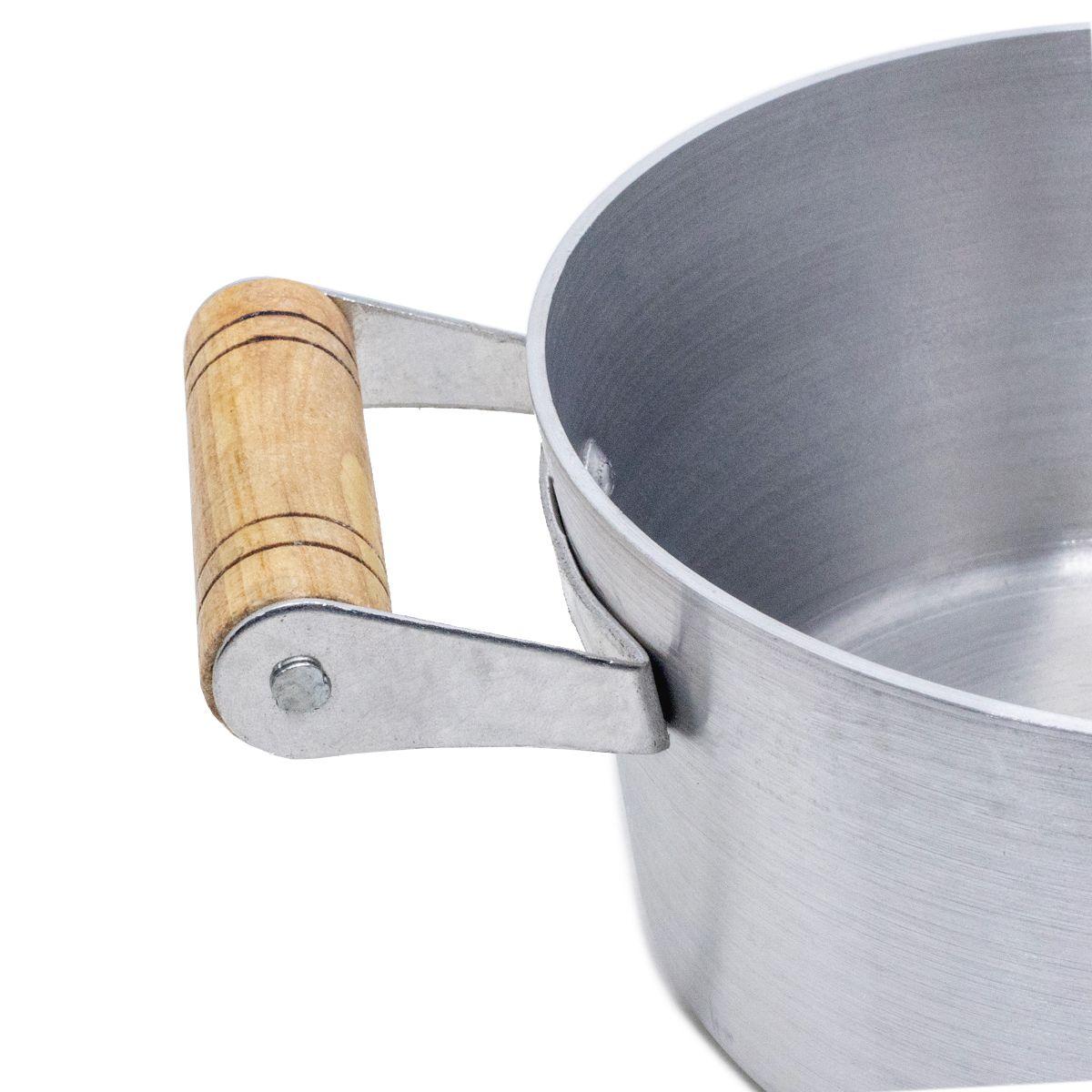 Todas as nossas panelas são confeccionadas com alumínio maciço de excelente qualidade e elevado grau de pureza, o que impede o risco de trincas e fissuras. Feitas com muito cuidado e carinho, nossas alças são fundidas em conjunto com o corpo da panela e revestida em madeira tendo belo acabamento finalizada com verniz.