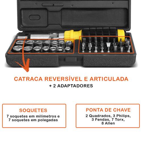 Jogo de Soquetes Ponteiras Titanium com Encaixe 1/4 Polegadas 41 Peças com Maleta