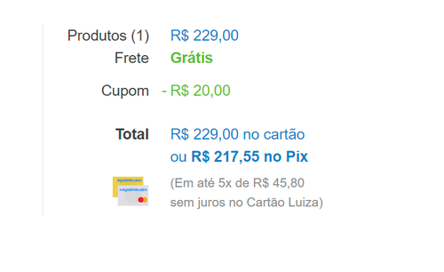 opa aqui deu 217 com o cupom PRAVC20, cadastrei ele ontem n sei se ainda tem.