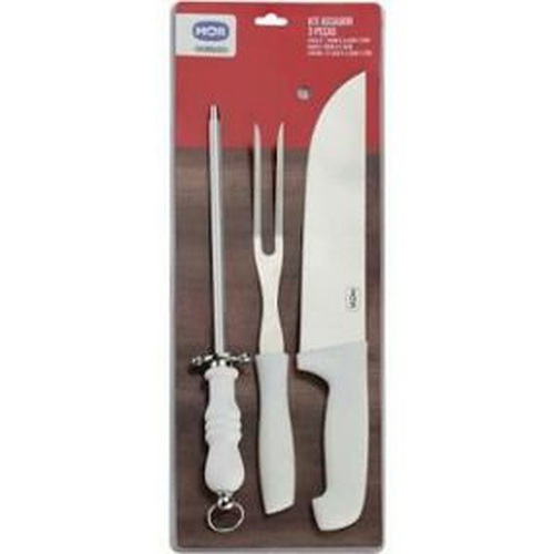 Jogo para o Churrasco 3 Peças com Cabo Branco ou Kit Caipirinha 3 Peças por R$ 10
