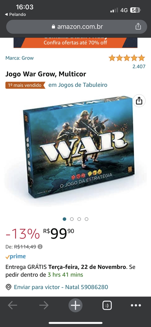 Jogo muito bom. Tenho o War 2 há mais de 10 anos e continua intacto. É um ótimo jogo para jogar com os amigos. Lembrando que é para 3 ou mais jogadores.