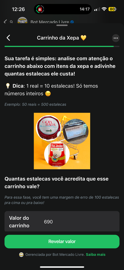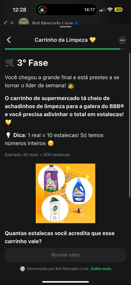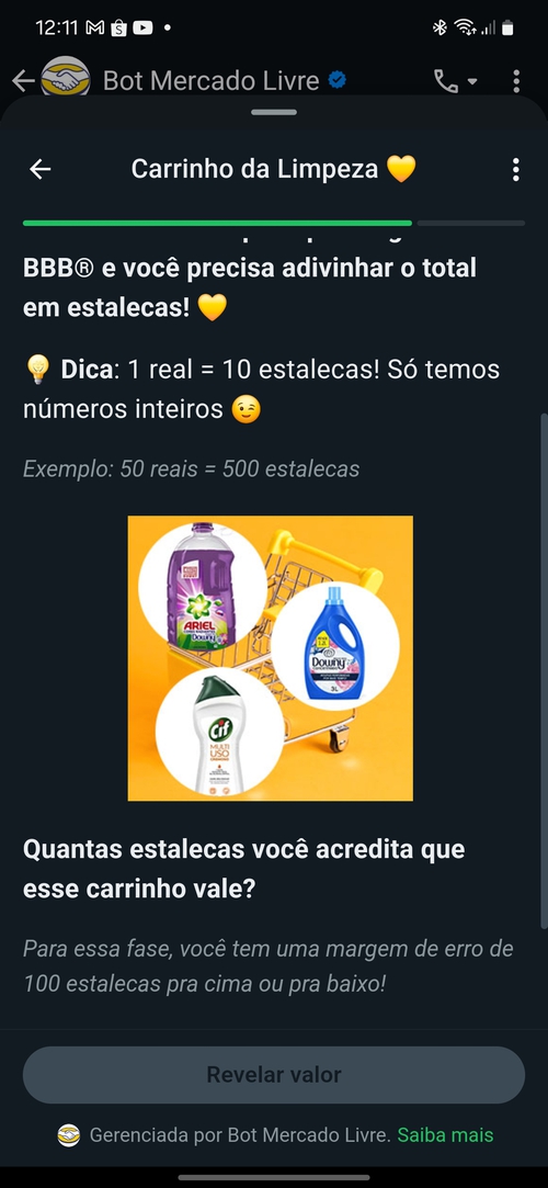 Dica: deixem o celular desligar com a imagem dos produtos kkkkkkkk o meu celular descarregou e desligou, quando liguei dnv chegou o cupom DO NADA sem ter respondido o valor