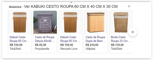KABUKI CESTO ROUPA 60 CM X 40 CM X 30 CM R$ 128