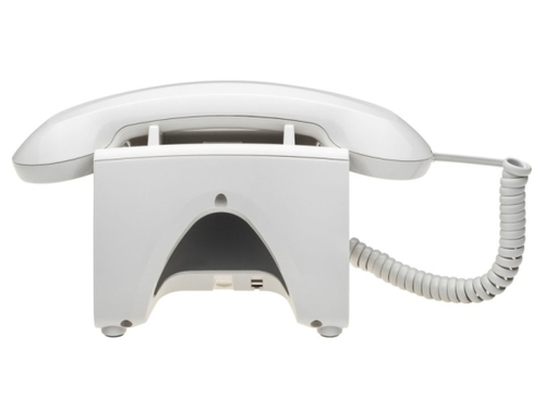 Esse telefone tem design que mistura o formato de telefones antigos, mas com as funcionalidades e acabamentos atuais.