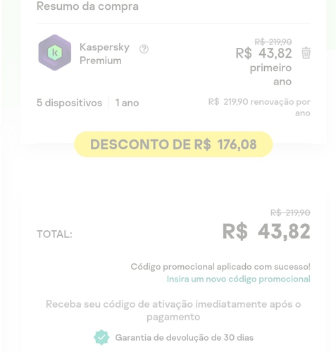 Consegui pagar o valor de 78,00 em 2 anos com 3 dispositivos com o cupom e escolhendo uma forma de pagamento que dá mais 5% de desconto.