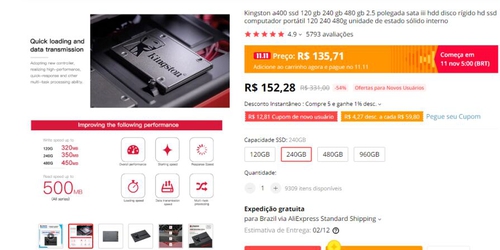 Está caro, para ser importado e sujeito a taxas. Peguei um DE 240GB há 3 meses por 160 nas americanas, incluso frete, e aí está 152, sem considerar a looooonga demora, não possuir NF, sujeição a taxas ... NÂO COMPENSA