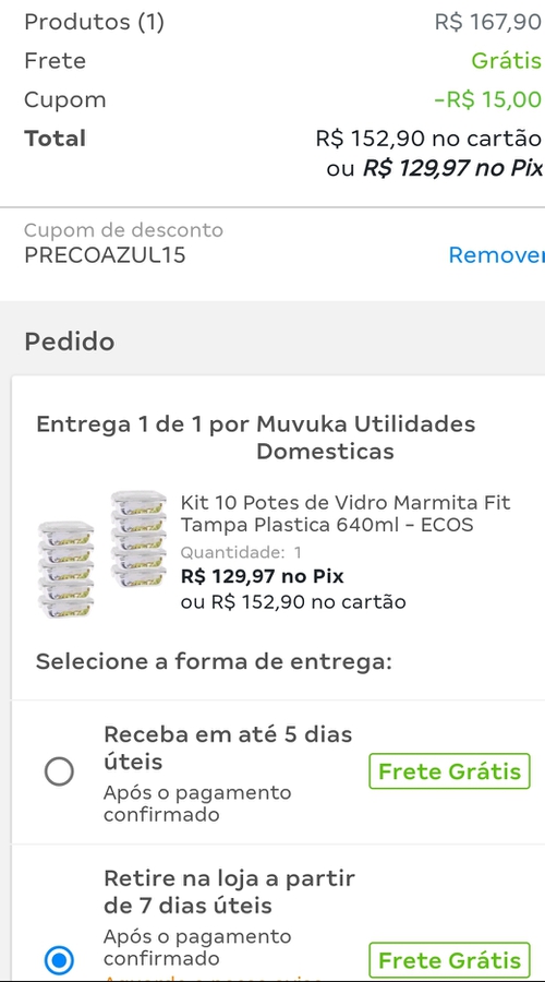 Aqui deu frete grátis tanto retirada em loja quanto entrega