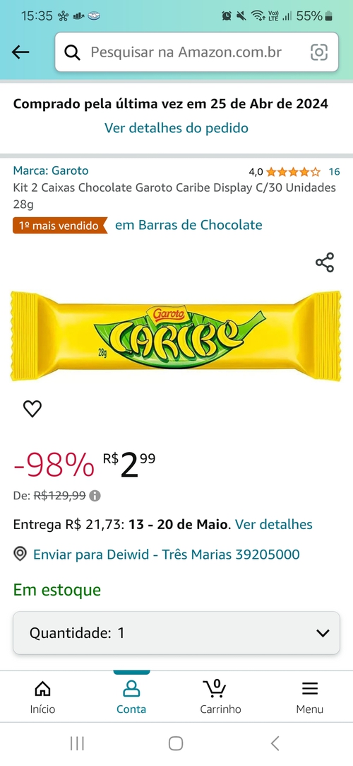 Comprei também mas depois vi que tem algumas reclamações dizendo que o chocolate parece estar vencido, tem até o vídeo de um cliente mostrando a aparência péssima do chocolate, acho que não vou pagar o boleto.