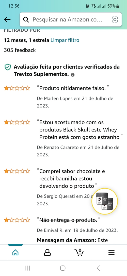 creatina por marketplace é complicado.. a não ser que se conheça a loja, que tenha uma boa reputação. Na dúvida, quem comprar, sugiro enviar as informações do rotulo para a Max confirmar se o lote é original