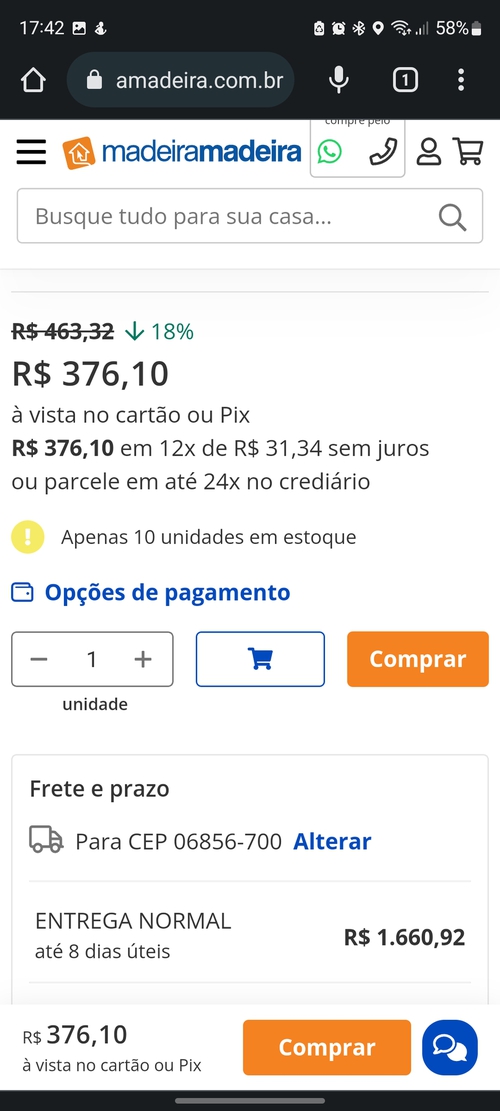R$1660,92 de frente... É mais barato ir buscar de helicóptero.4.700 reais de Frete! 😮 Se me passar o endereço eu mesmo vou buscar!