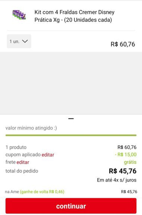 Kit 4 fraldas XG cremer 20 unidades cada. | R$53