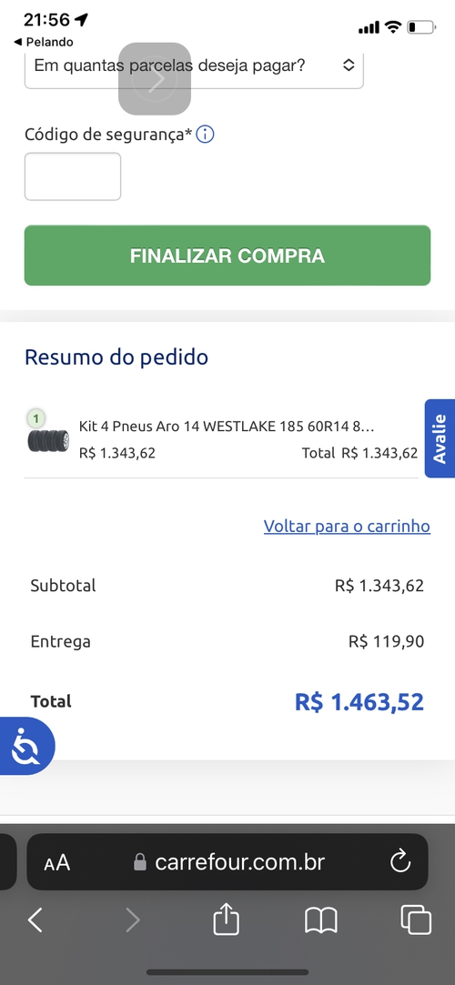 Como n tem Carrefour na minha cidade, vou comprar 4 pneus aqui pra cruzar cidades pra comprar os pneus. Já bolei tudo
