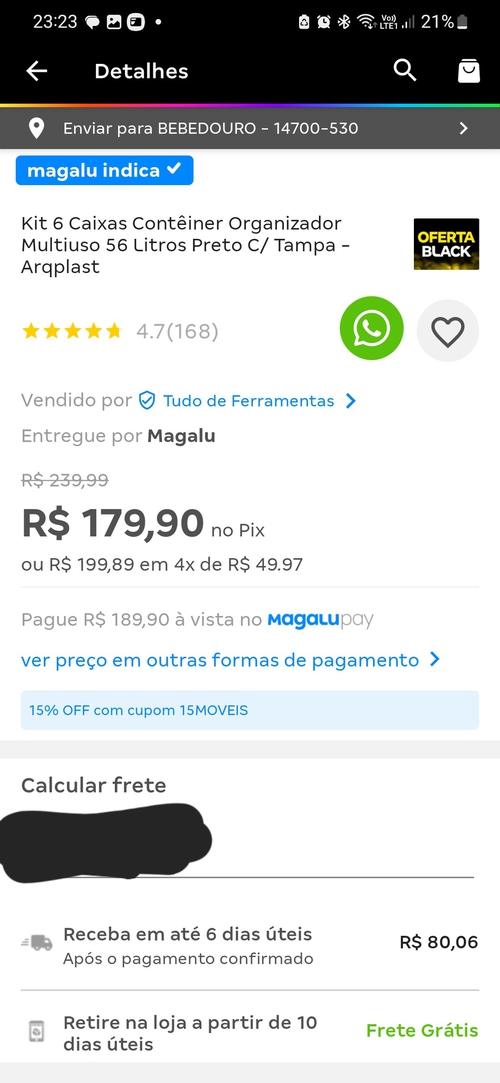 No meu caso, deu retirada na loja grátis
